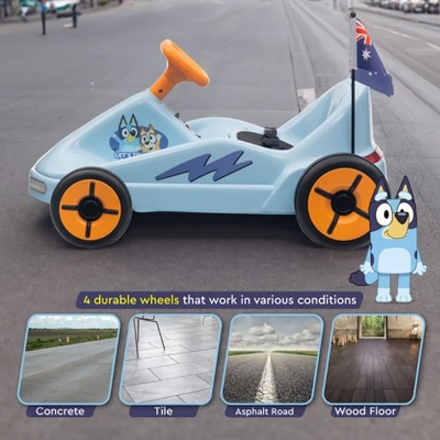 - Experience Thrilling Adventures: Let your little ones embark on exciting journeys with the Bluey 12V kids go kart, designed for kids aged 3 to 6, offering exhilarating speeds and safe controls for outdoor and indoor playtime adventures
