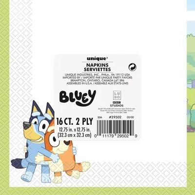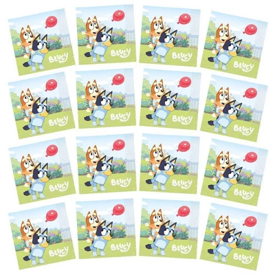 Make your party look pup-tastic with our Bluey Luncheon Napkins. Printed with a design of Bingo on Blueyâs shoulders, these 2-ply paper napkins are great for your Bluey birthday party. Include these napkins in your place settings, or leave them in a stack at the front of your buffet table for easy grabbing. Find more ways to bring Bluey to your bash and shop the rest of our Bluey themed party supplies.