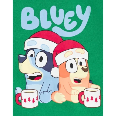 - Awesome screen print design of Bluey and Bingo wearing Santa hats; Jogger style sweatpants; Rib knit crew neck collar; Ribbed sleeve cuffs, ankle cuffs, and waist for a better fit; Elastic waist for comfortable stretch and a better fit; Pull on closure