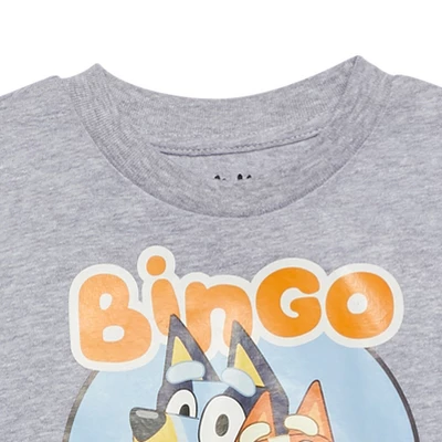 Come meet Bluey the 6 year old Blue Heeler pup and her younger sister Bingo! Watch Bluey and Bingo come to life through your little oneâs friendly and fun personality. Your child is going to love playing indoors or outdoors in their new Bluey Graphic T-Shirt.