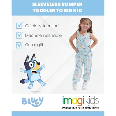 - Officially licensed Bluey Muffin Bingo Bluey toddler girls cute and stylish sleeveless one-piece romper