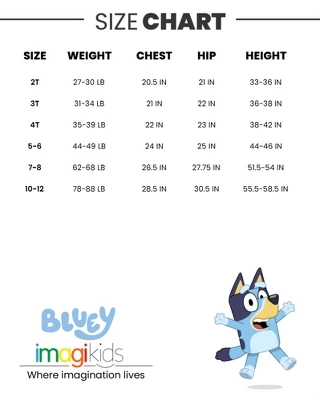 Get ready for a winter adventure with your little kid’s favorite Bluey characters. This cozy hooded puffer jacket features an adorable all over print of Bluey and her sister Bingo. Warm and comfortable, this cute Bluey zip-up coat will have your child ready for fun and play no matter the weather.