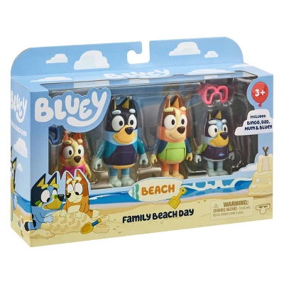 - The “Family Beach Day” 4 Pack includes Bluey, (little sister) Bingo, (Dad) Bandit and (Mum) Chilli figures.