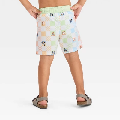 Prep your little adventurer for sunny activities in these Bluey Checkered Swim Shorts. Made from a soft fabric and featuring a tagless design, these regular-rise swim shorts offer them comfortable wear in or out of water, while the UPF 50+ material helps keep their skin shielded from the sun. Plus, they’re designed with a drawstring waistband for a secure and customizable fit. Showcasing a checkered print in blue, orange and green with Bluey and Bingo illustrations, they make a fun pairing with various rash guards or swim tops.