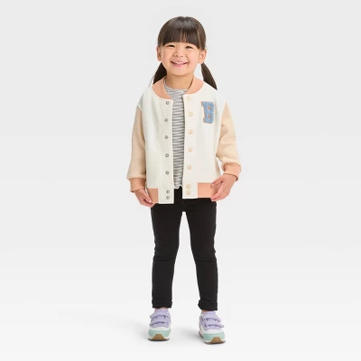 Set up your toddler for fun times in this Bluey Varsity Bomber Jacket. Crafted from a midweight fabric, this long-sleeve jacket offers them all-day cozy comfort. The button-front design allows for versatile styling, while ribbed cuffs and a ribbed hem offer a neat look and snug fit. Showcasing a colorblock design in cream, light orange and blue hues, this bomber jacket features the initial “B” on the chest for cute, sporty flair.